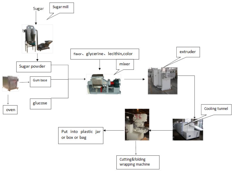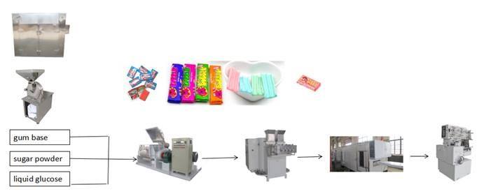 1. предоставление комплексных услуг в отношении основы жевательной резинки, упаковочных материалов, машин, пищевых ингредиентов, технической поддержки и рецептур конфет.