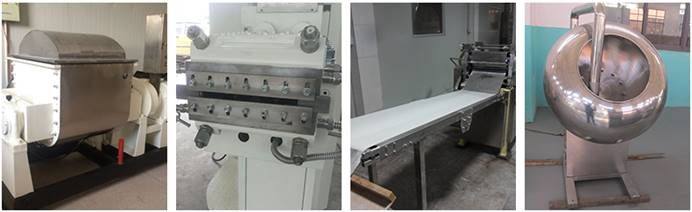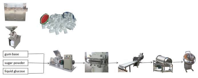 1. предоставление комплексных услуг в отношении основы жевательной резинки, упаковочных материалов, машин, пищевых ингредиентов, технической поддержки и рецептур конфет.